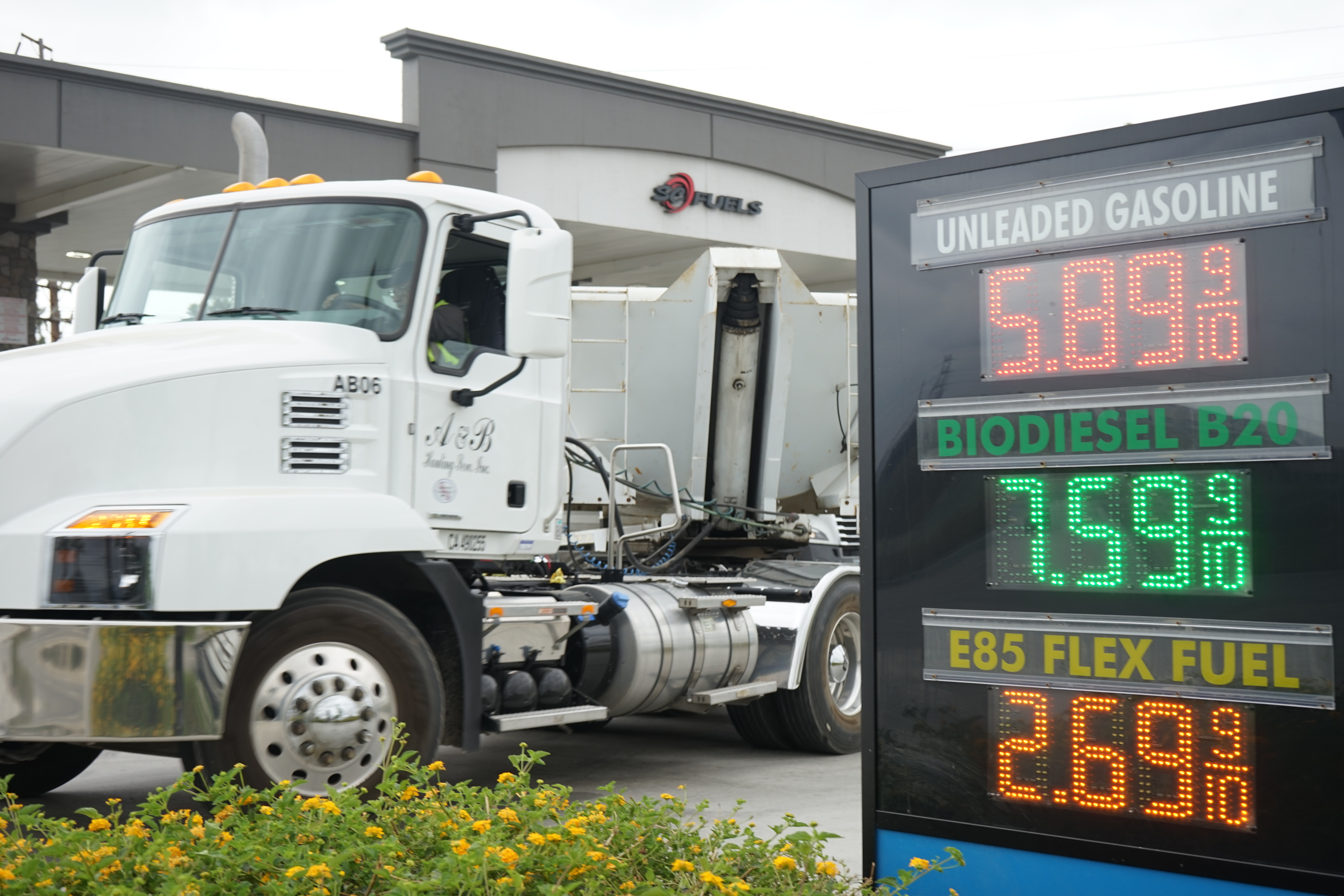 这是3月31日在美国加利福尼亚州蒙罗维亚市一座加油站拍摄的油品价格。美国汽车协会3月31日发布的数据显示,加利福尼亚州的普通柴油平均价格当日达到每加仑7.45美元,再次创下历史新高。新华社发(曾慧摄)